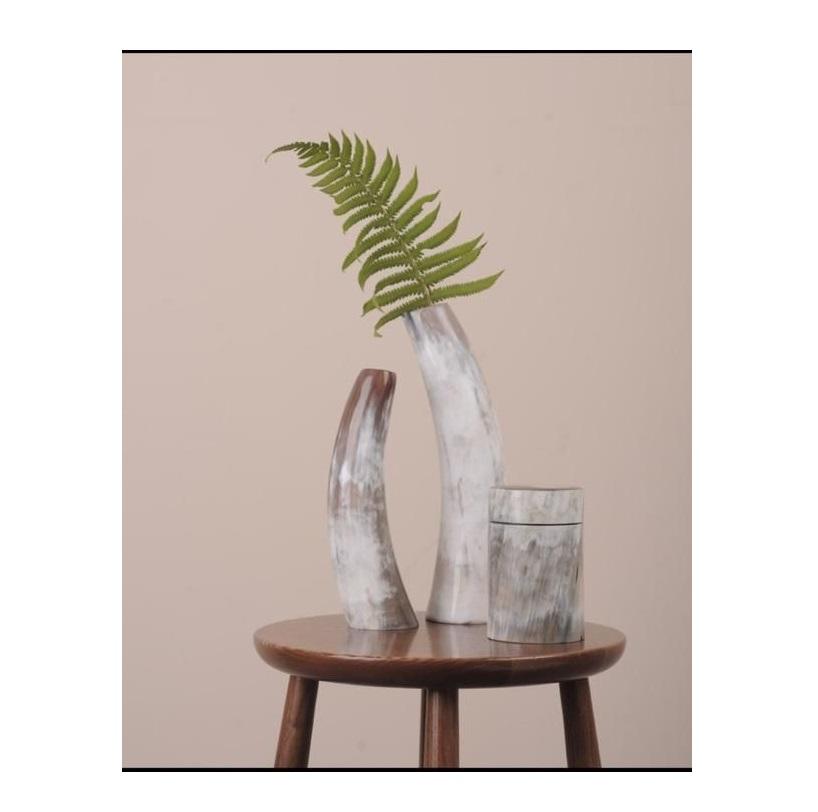 Solid High Quality Antiqued Cow Horn Eco-Friendly Decorative Flower Vase Exclusive Modern Insular Tabletop Wood Stand Art Deco
