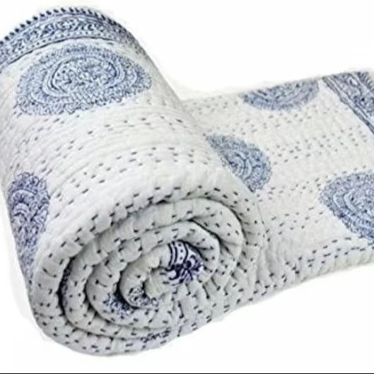Solid Kantha Quilts Indian Handmade Cotton Reversible Bedspread Wholesale Lot for Hotel Use Home Decor Bed Throw Blanket