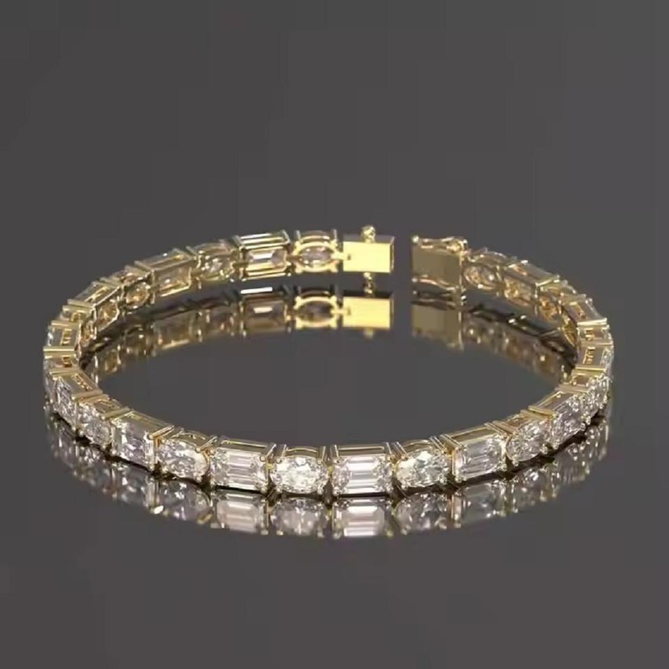 Solid Lab Grown Emerald And Oval Cut Diamond Bangle in 14K Yellow Gold Moissanite Bracelets & Bangles