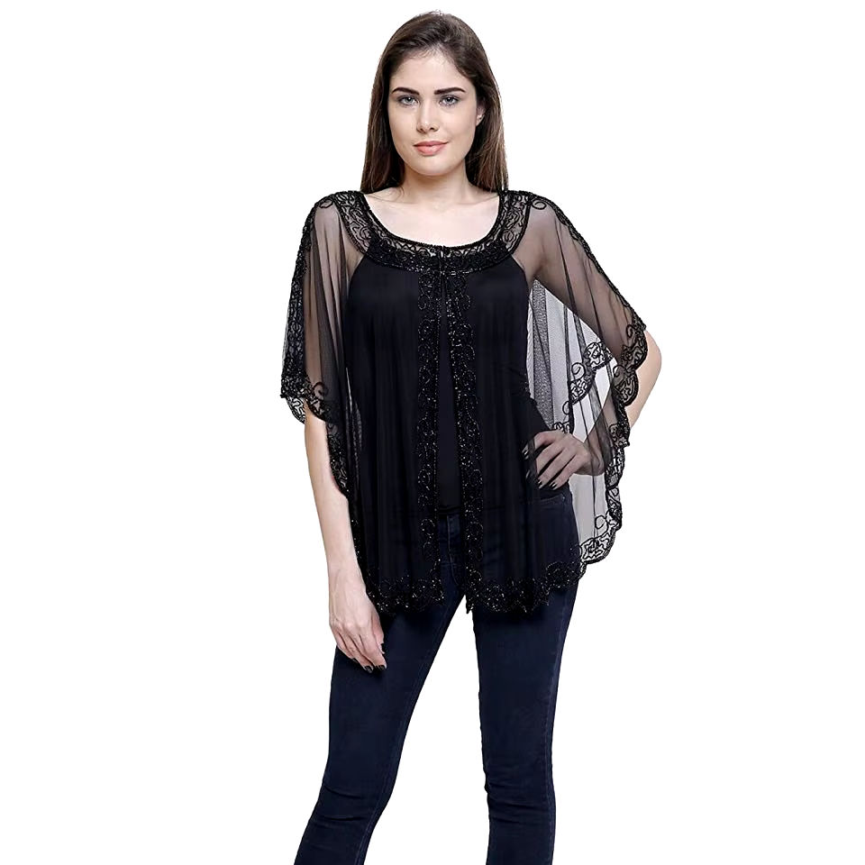 Elegant Beadings Fashionable Short Poncho/Top/Shrug