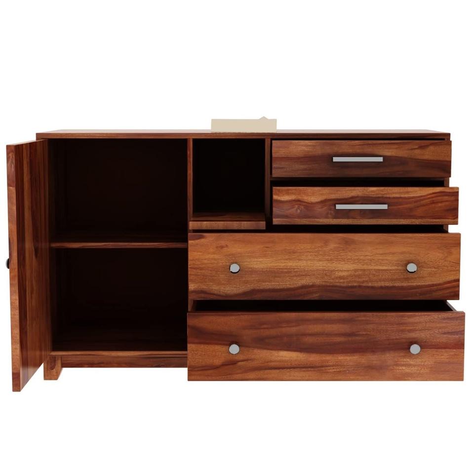 Solid Mango Wood Foldable Chest of Drawers with 2 Large 2 Small Drawers 3 Shelves for Apartment Farmhouse Living Room Furniture