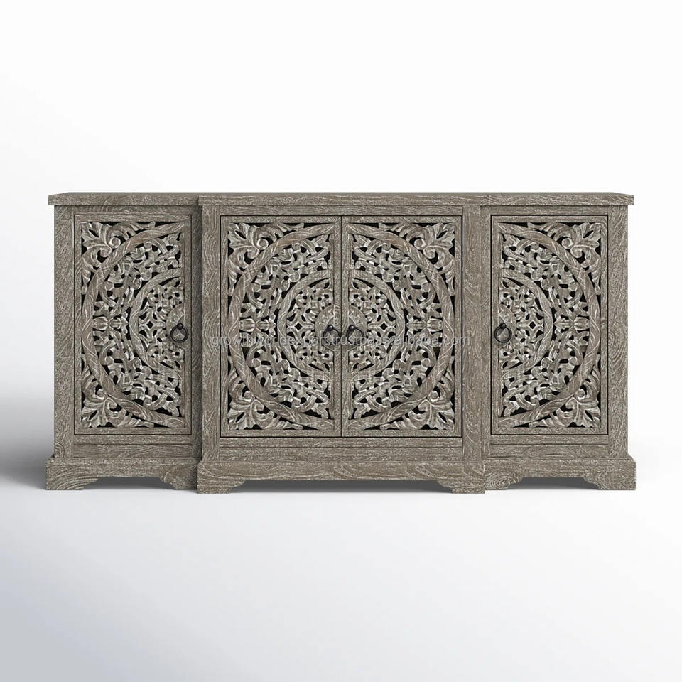 Solid Mango Wood Handcrafted Sideboard Vintage Finish Latest Design for Home Bar Farmhouse Dining Bathroom Bedroom