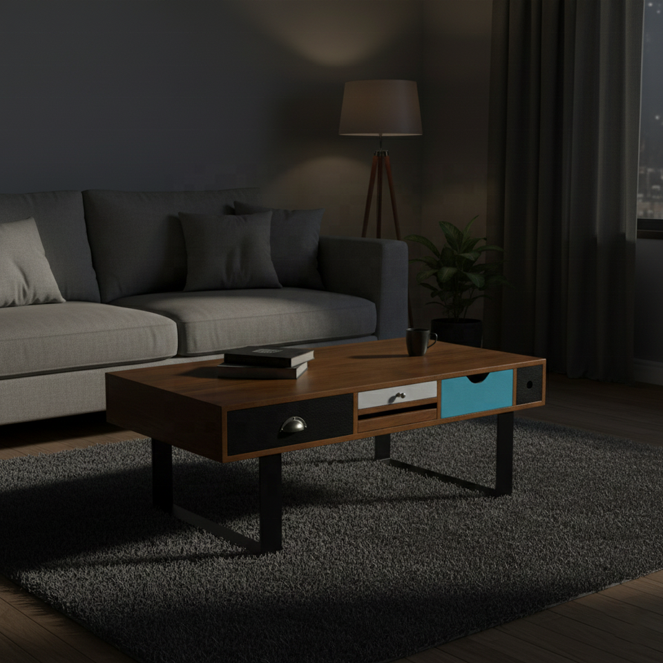 Solid Mango Wood Multi-Drawer Coffee Table Modern Scandinavian Design Knock Durable Construction Living Room Center Table
