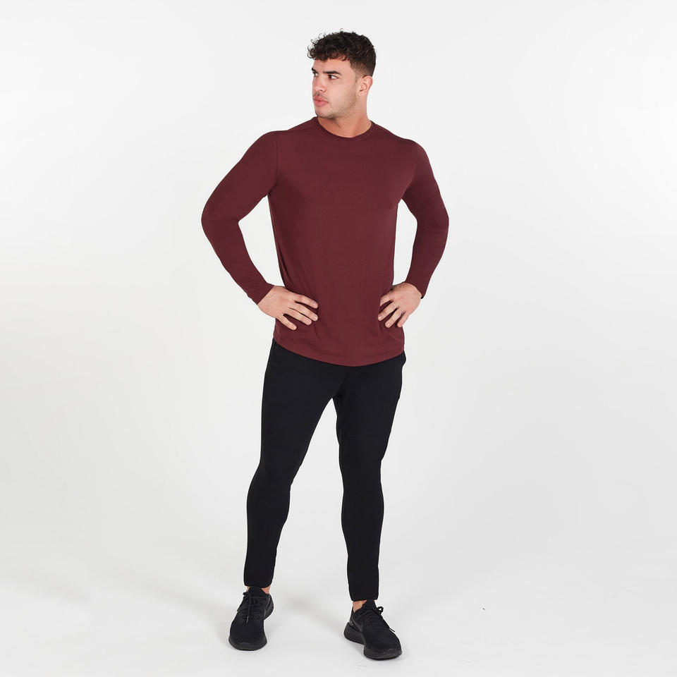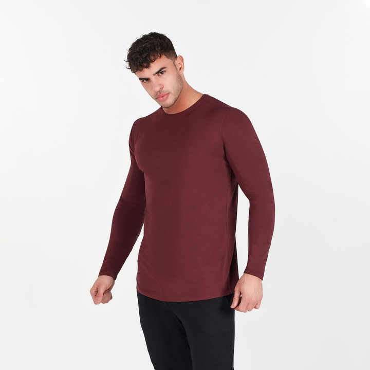 Solid Men's 100% Cotton Breathable Anti-Wrinkle Long Sleeve Base Layer Gym T-Shirts Quick Dry Loose Fit High Street Style