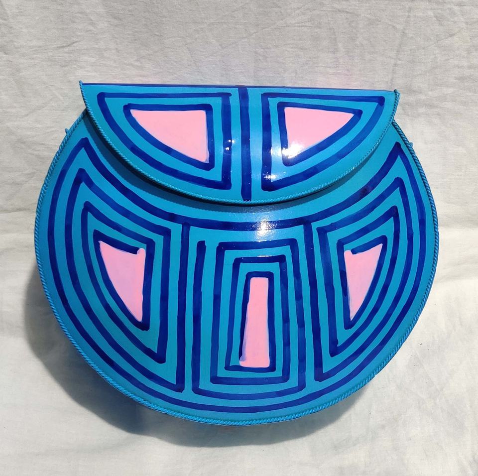 Solid Metal Blue Color Painted Dangling Hand Bags Chain Bags For Women Party And Wedding Ceremony Wholesale Handcrafted Purse