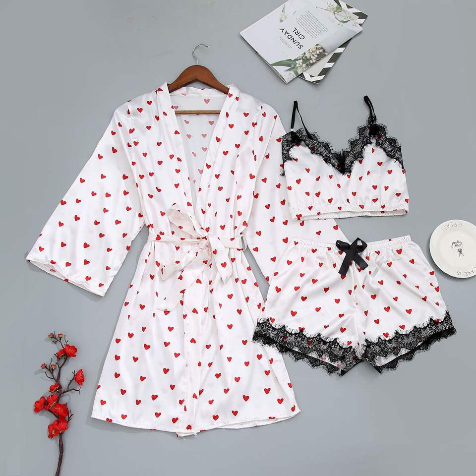 Solid Milk Silk Women Kimono Gown Sexy Strap Nighty Adult Summer Robe Sets 3PCS Cardigan Nightgown Bride Bathrobe Lace Pyjamas