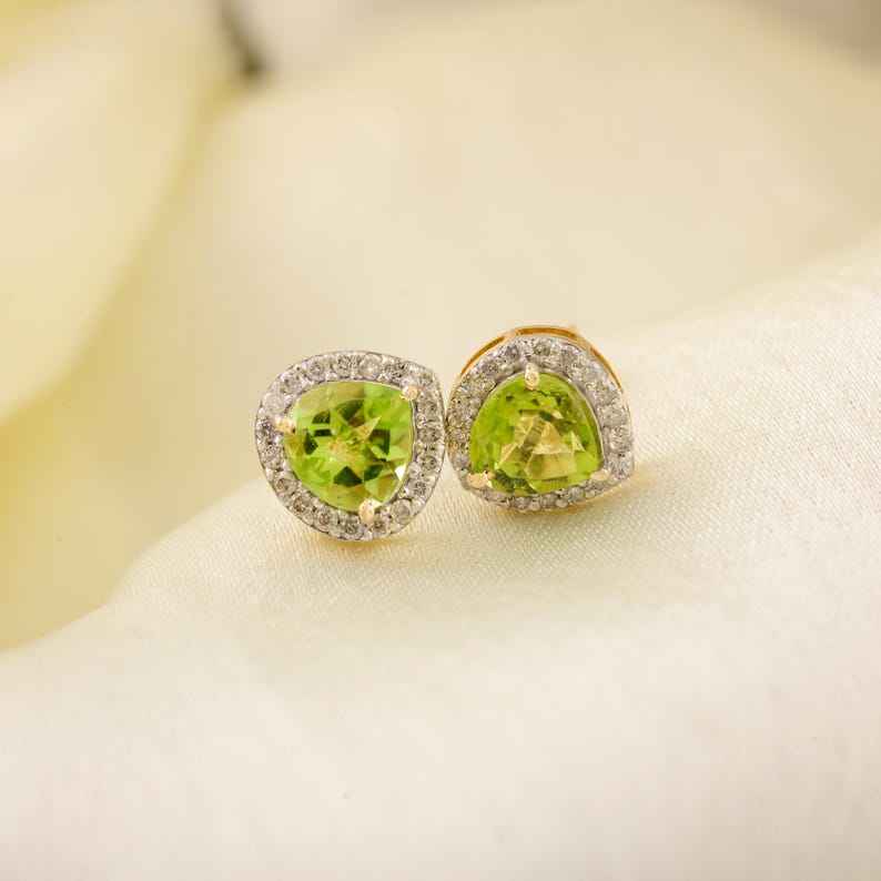 Peridot Stud Earrings With Sparkling Peridot Stones