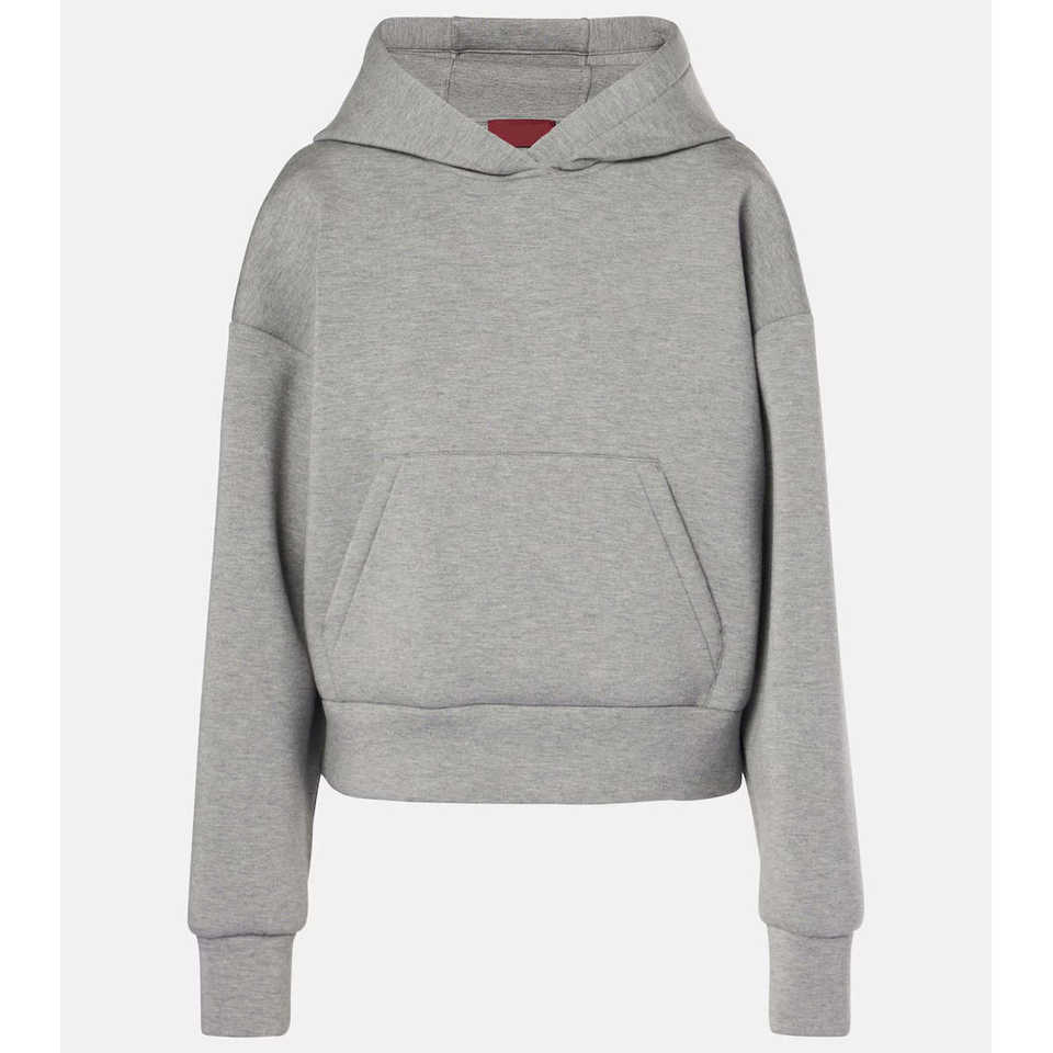 Solid Pattern Custom Color Logo Design Knitted Winter Women's Crop Hoodies Sweatshirts with Kangaroo Pockets 100% Cotton Fleece