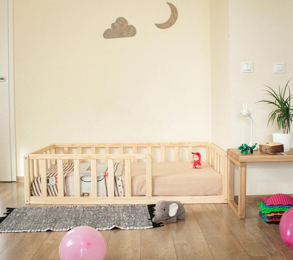 Solid Pine Wood Nursery Platform Montessori Floor Toddler Bed Frame with ROUND CORNERS Slats Rails Children's Bed Furniture
