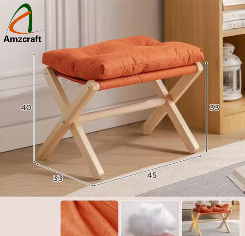 Solid Pine Wood X Legs Simple Couch StoolUsage