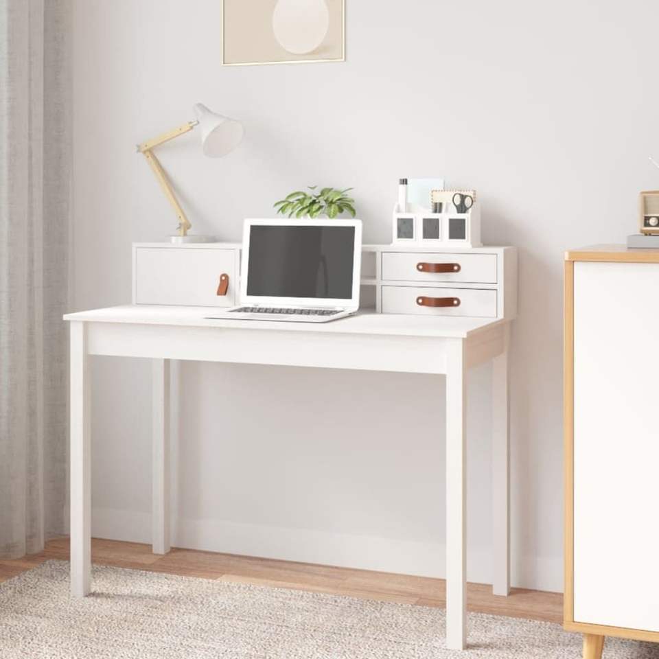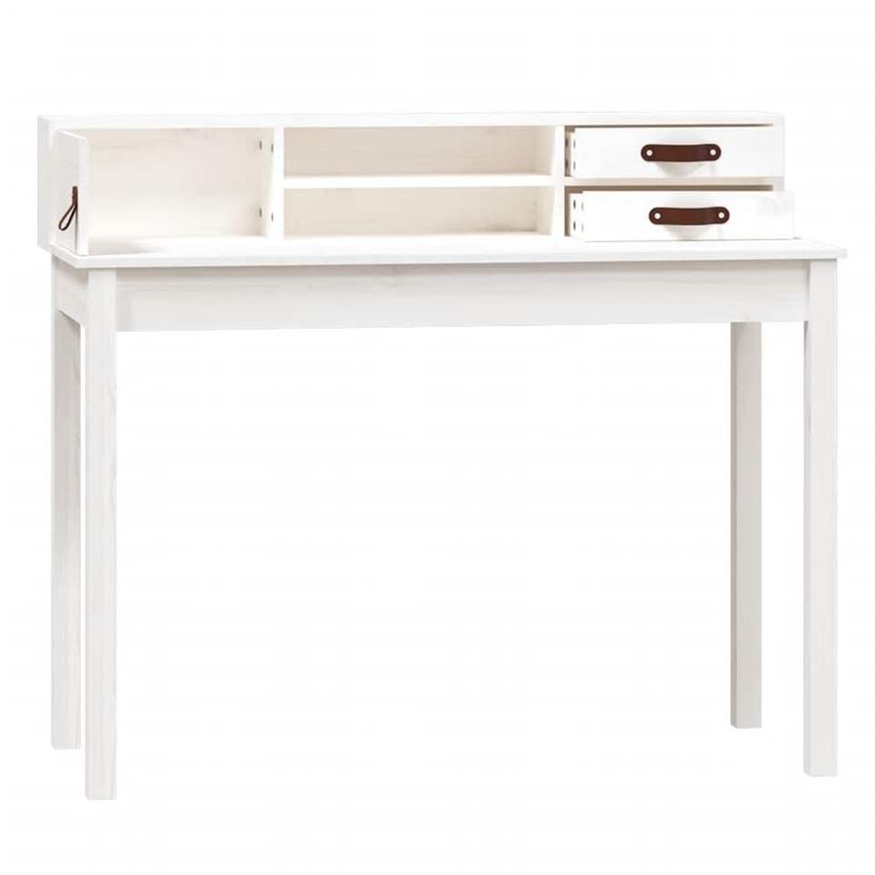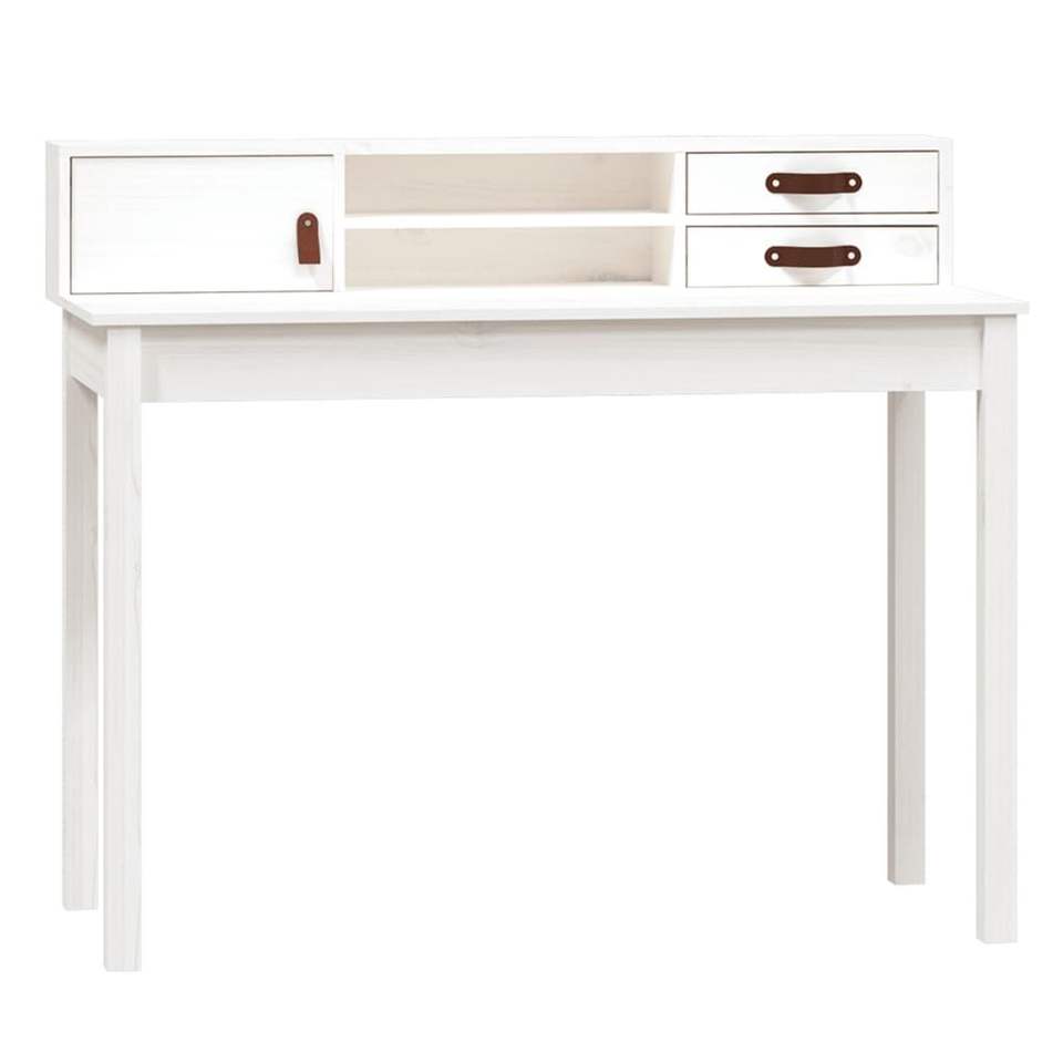 Solid Pine Wood and Faux Leather (100% Polyurethane) Computer Desk White Desk