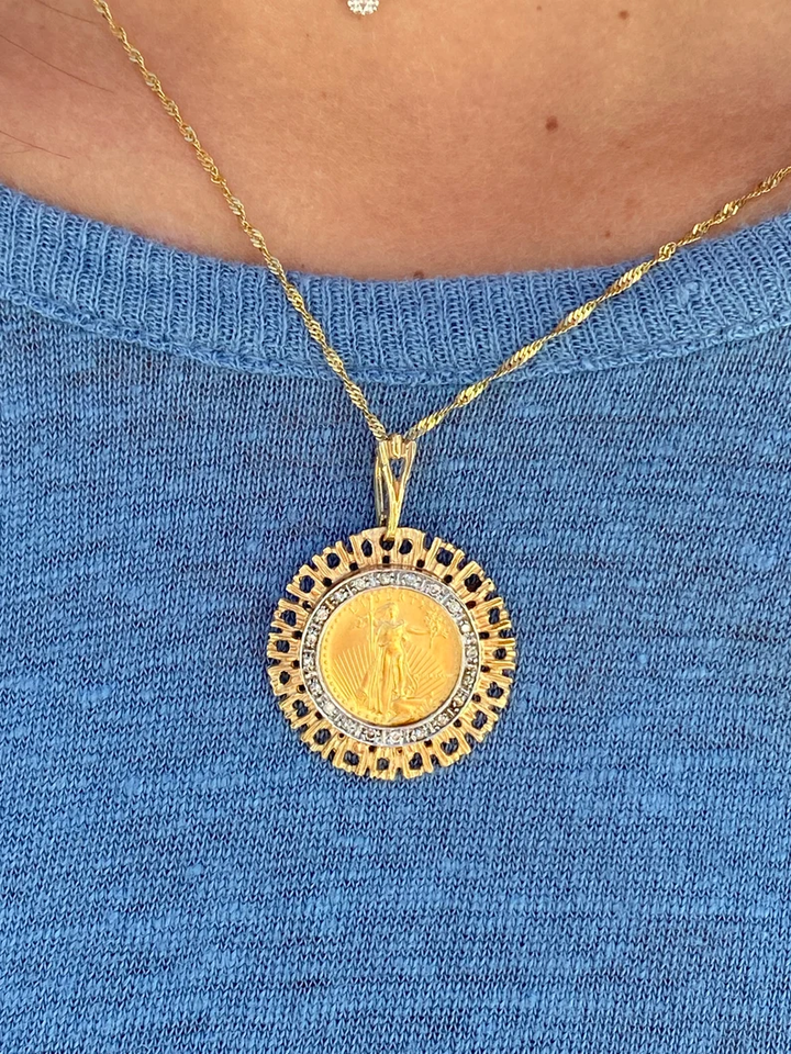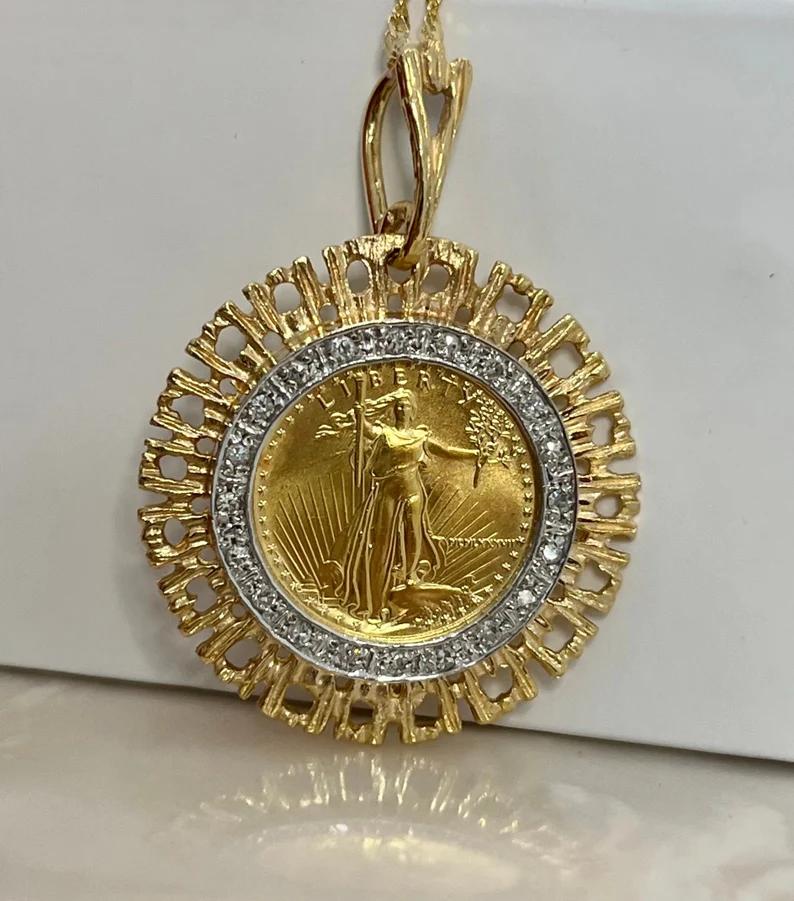 Solid Real 22K Gold Plated Pendant Necklace Gold Colin and Diamond Bezel Pendant for Women's Fashion Jewelry