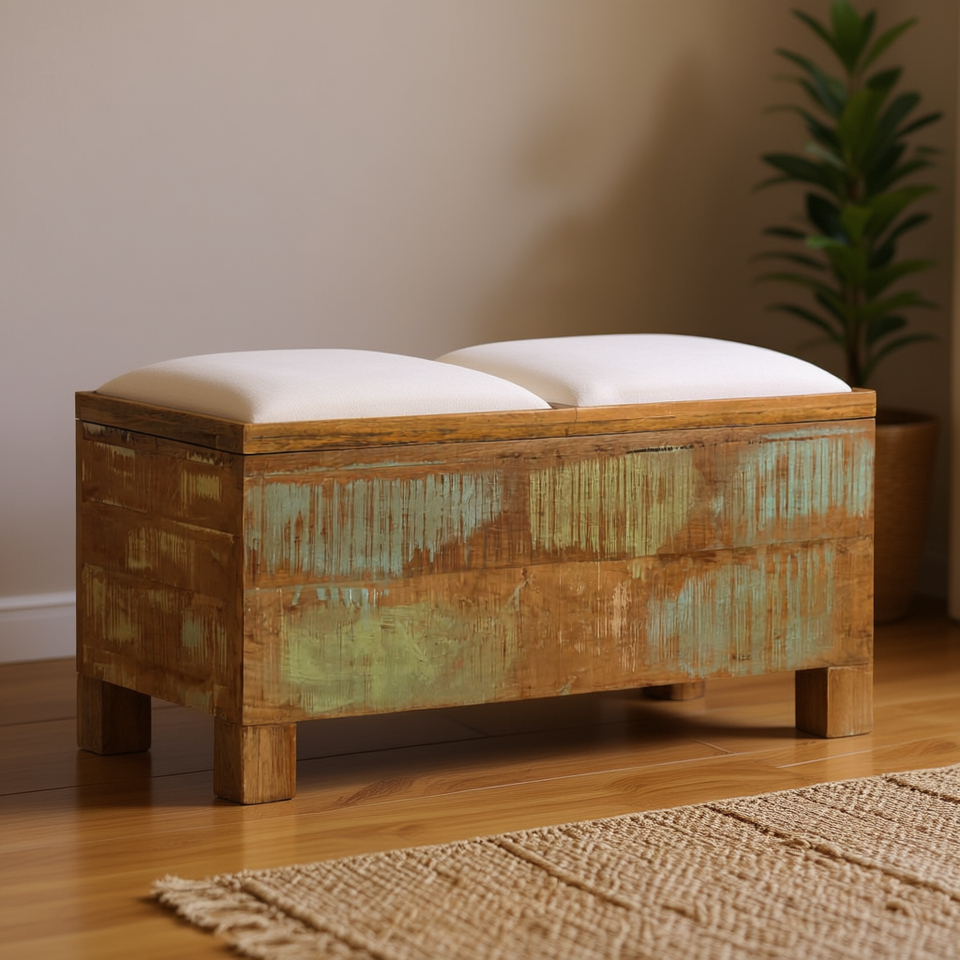 Solid Reclaimed Wood Storage Bench 31.5x15.7x15.7 Living Room Furniture Rustic Antique Design