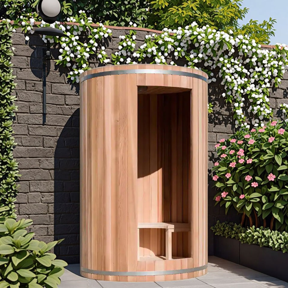Solid Red Cedar Mini Cube Outdoor Sauna Room 2-Person Electric 9kw Computer Control Panel for Home & Villas