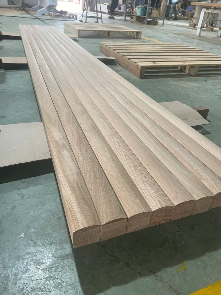 Solid Red Oak Wood Stair Handrail with Fillet Minimalist Balustrade Custom Length Premium Stair Parts Staircase Wall Mounted