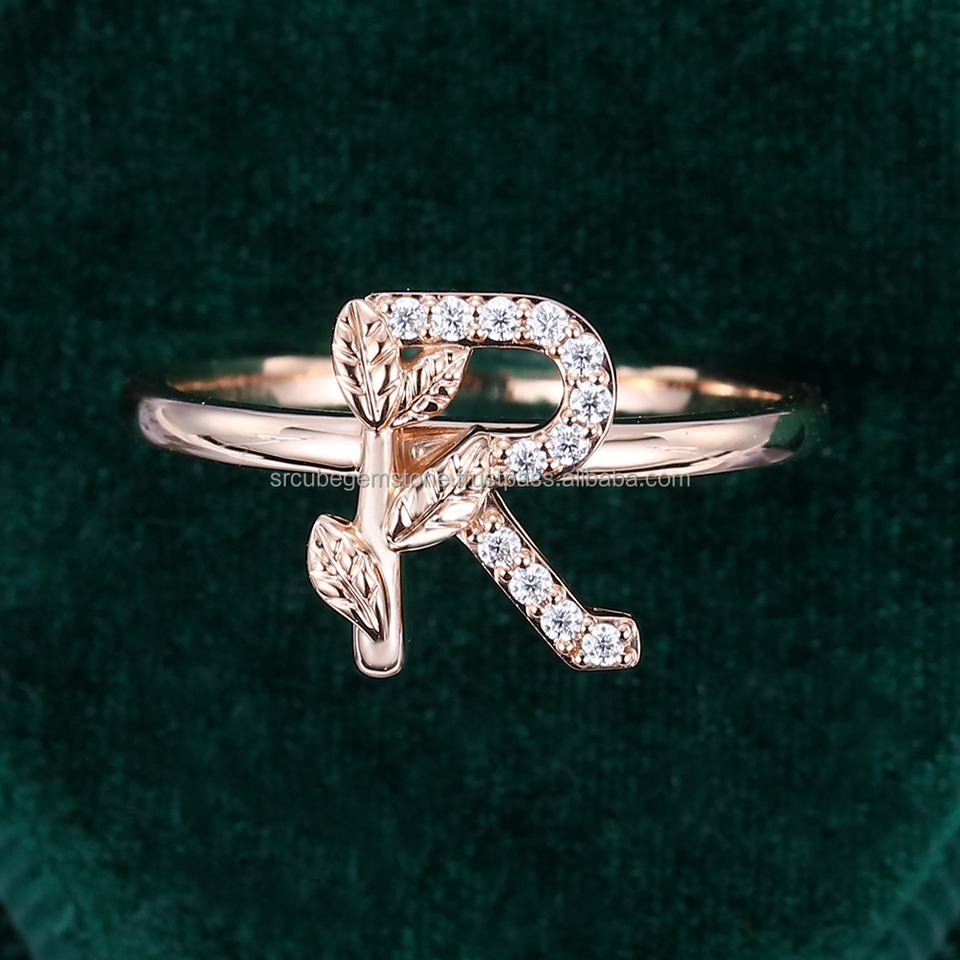 Solid Rose Gold 'R' Initial Fine Toe Ring Handmade Z Minimalist Diamond Jewelry for Wedding Engagement or Gift