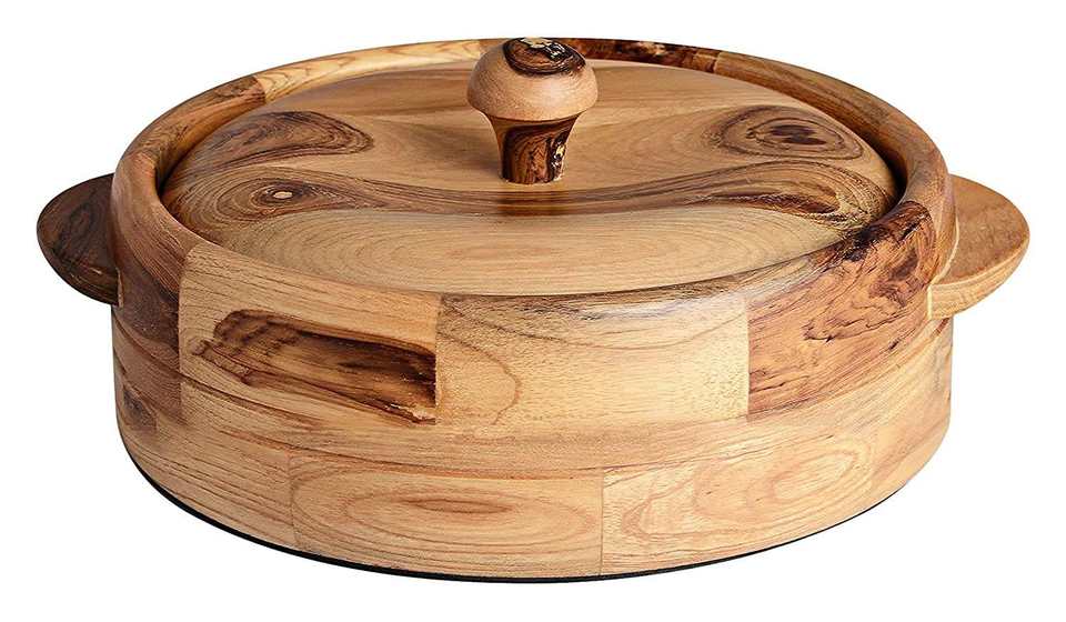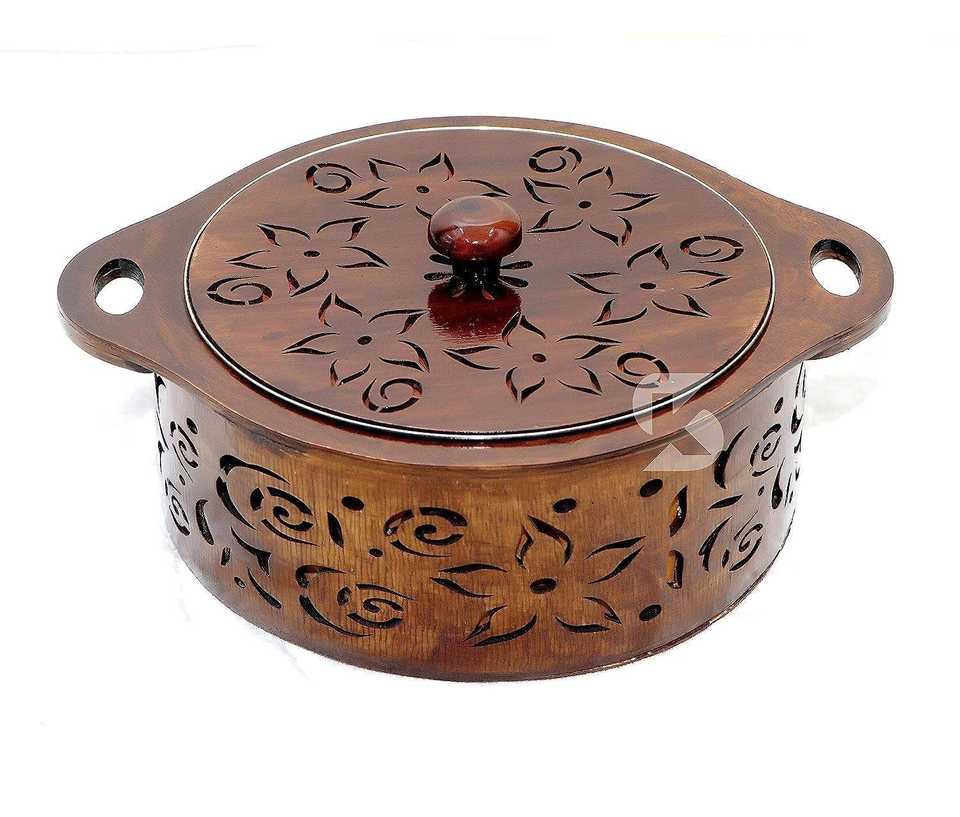 Solid Sheesham Wood Hot Pot Roti Box Set Insulated Casserole for Chapati Storage