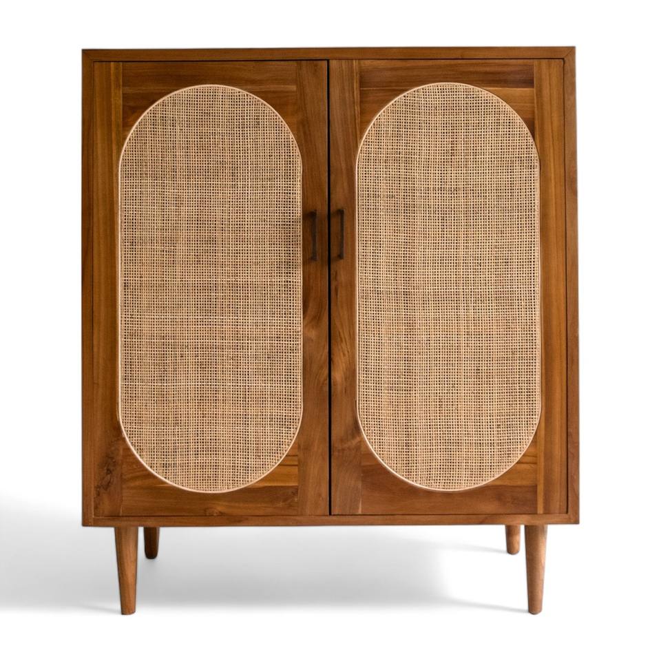 Solid Teak Storage Cabinet for Dining and Home Natural Finish with Rattan Shoe Rack Shelves Minimalist Living Room Furniture