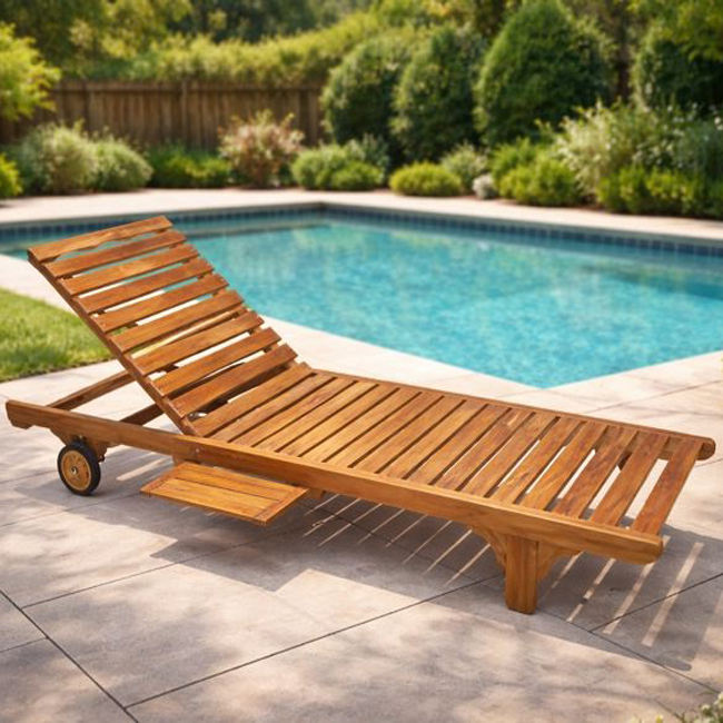 Solid Teak Wood Foldable Sun Lounger with Wheels Adjustable Backrest Eco-Friendly Outdoor Beach Chair for Hotel & Resort Use