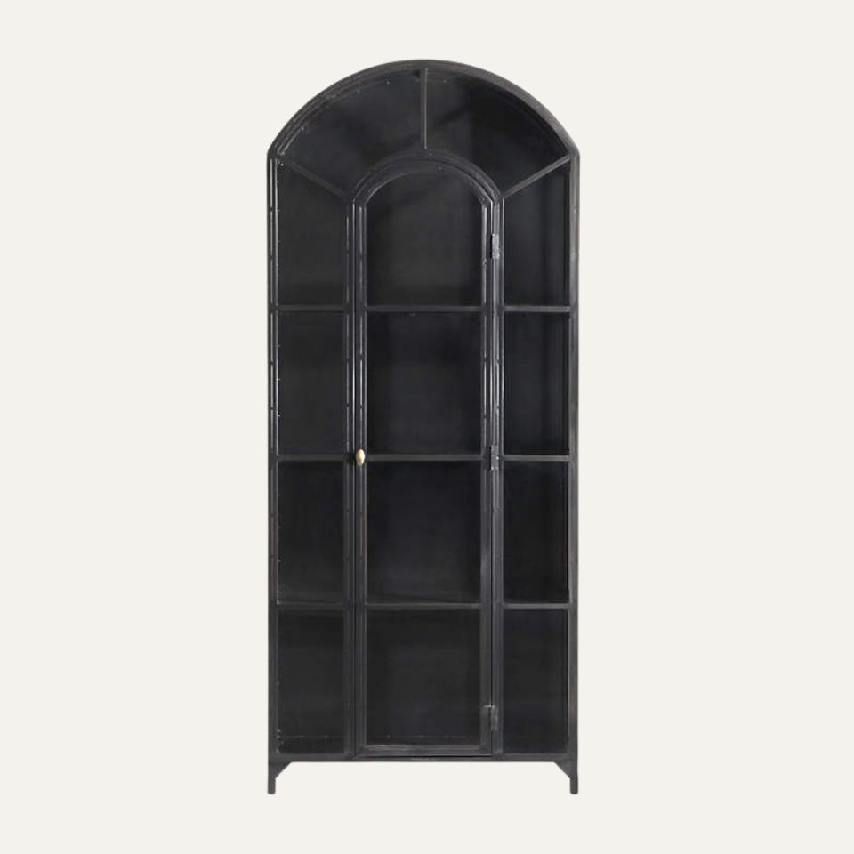 Solid Teak Wood Living Room Cabinet Display Shelf with Arch Design Indoor Home Furniture