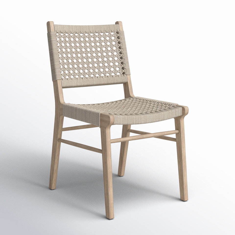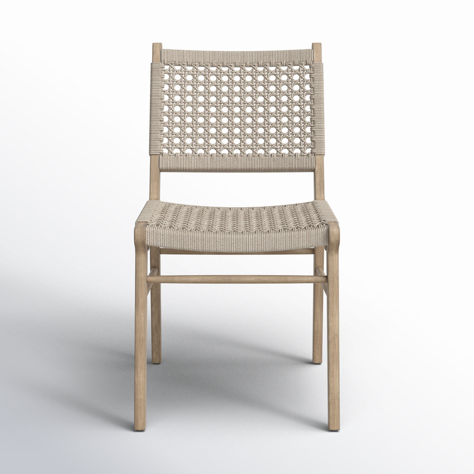 Solid Teak Wood Outdoor Dining Chair with Grey Woven Rope Backrest and Seat