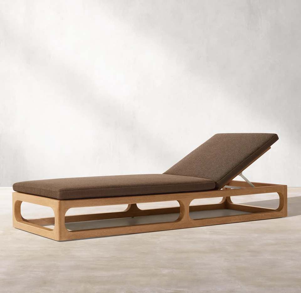 Solid Teak Wood Outdoor Sun Lounger with High Quality Cushions for Pool Garden Hotel-Durable Material Bed for Outdoor Use