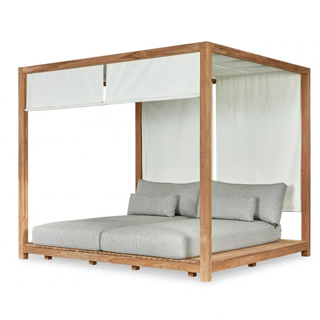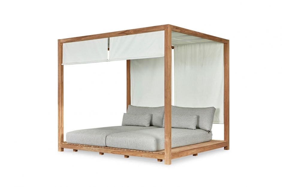 Solid Teak Wood Sabrina Outdoor Daybed With Teak Wood Material Natural Finish Sun Proof Cushion and Canopy