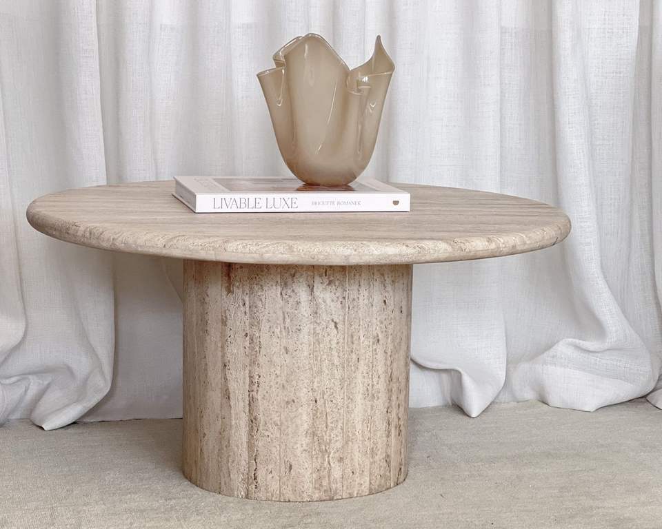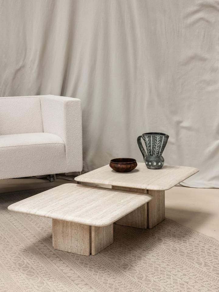 Solid Travertine Marble Coffee Table Heavy Stone Construction Offering Strength Style And Lasting Elegance
