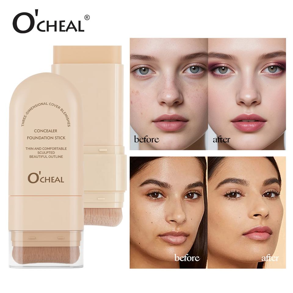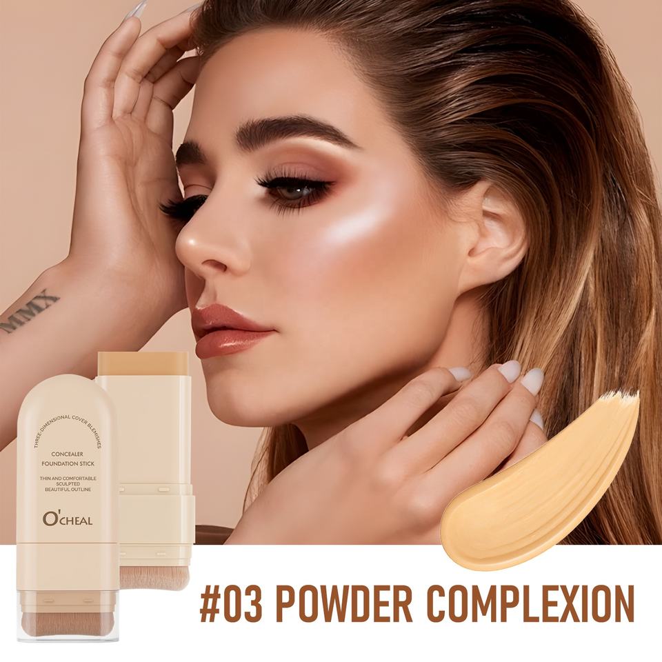 Solid Waterproof Non-Stuck Powder Double-Ended Concealer Foundation Stick for Women for Light to Dark Skin Tones