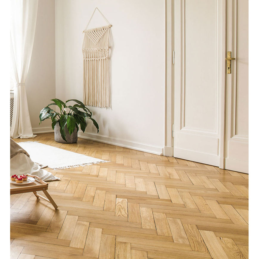 Solid White Oak Flooring Natural Matt Lacquered 90mm Broken Baton 18mm Thickness Click Lock Installation for Home Use