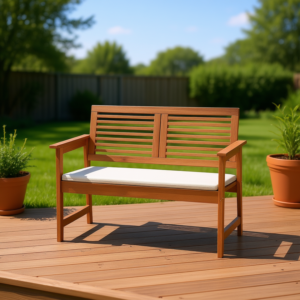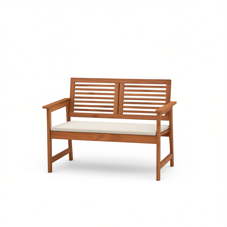 Solid Wood 2 Person Patio Bench With Backrest And Cushion Outdoor Seating Modern Contemporary Design