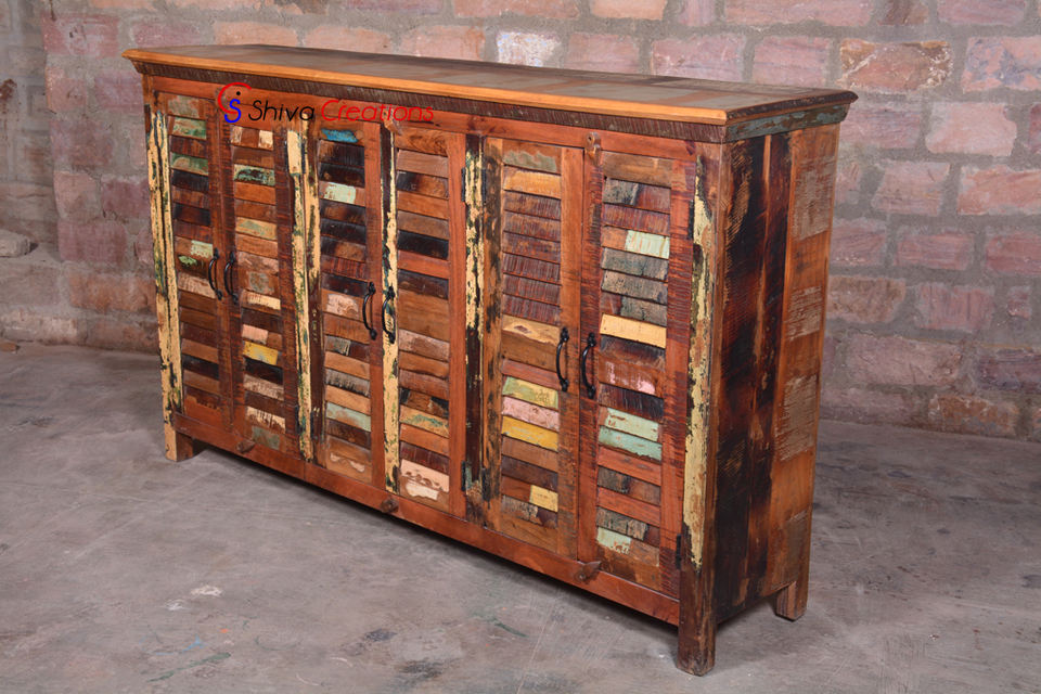 Product name:6 Shutter Doors Vintage Old Reclaimed Wood Cabinet