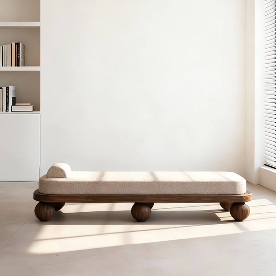 Solid Wood Bench With Fabric Cushion Soft Seating Home Stool Ottoman Long Bench For Living Room