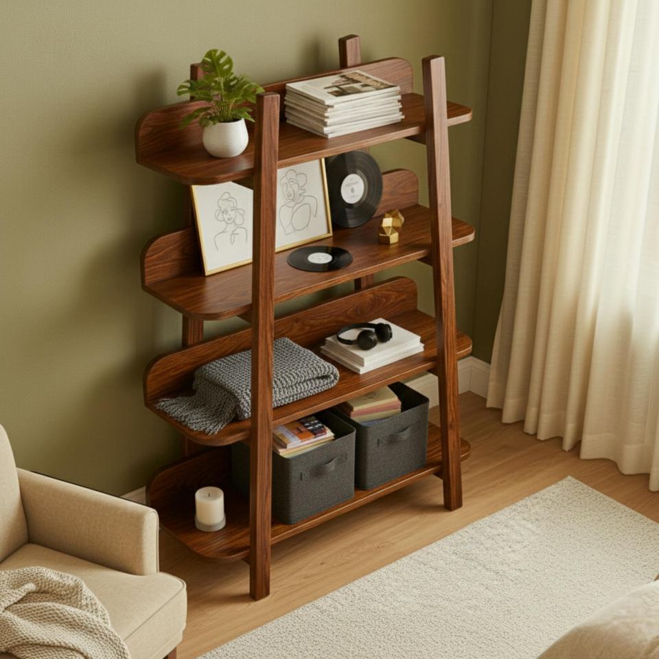 Solid Wood Bookcase With Elegant Rounded Corners Customizable Wooden Display Shelf Multi-Tier Storage Rack For Living Room