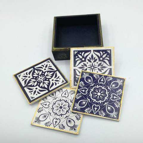 Solid Wood Coaster with Classic Style and Durability Printed Design to Protect Tables From Scratches Tea & Coffee Mugs Holder