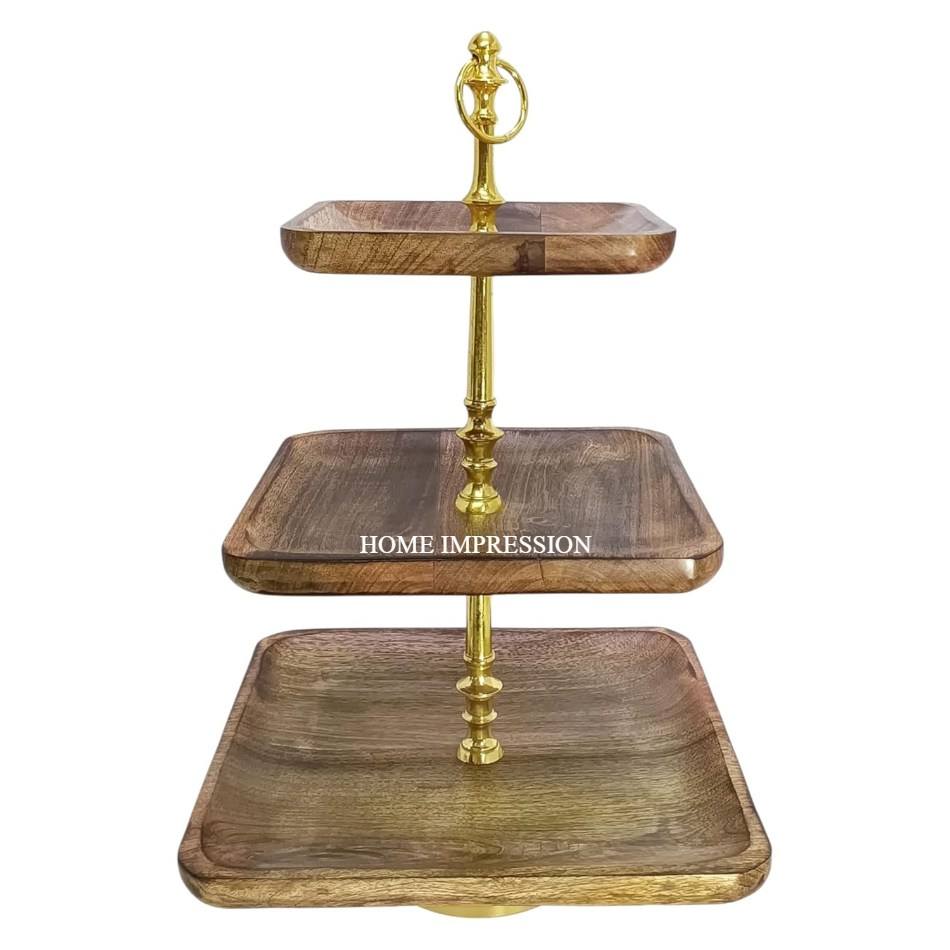 HOME IMPRESSION Solid Wood Dark Brown Eco-Friendly Handmade Classic Modern Stylish Multifunction Cake Stand for Home Kitchen