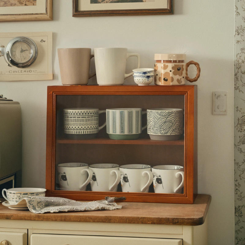 Solid Wood Desktop Storage Box Rectangle Retro Design For Cups Figurines Display Rack Standing Type Tidy Organizer