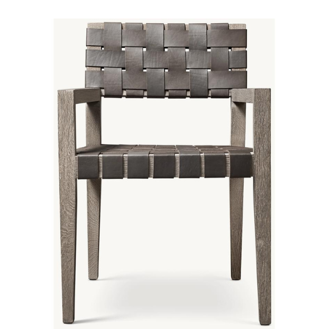 Solid Wood Dining Armchair with Woven Leather Seat and Backrest