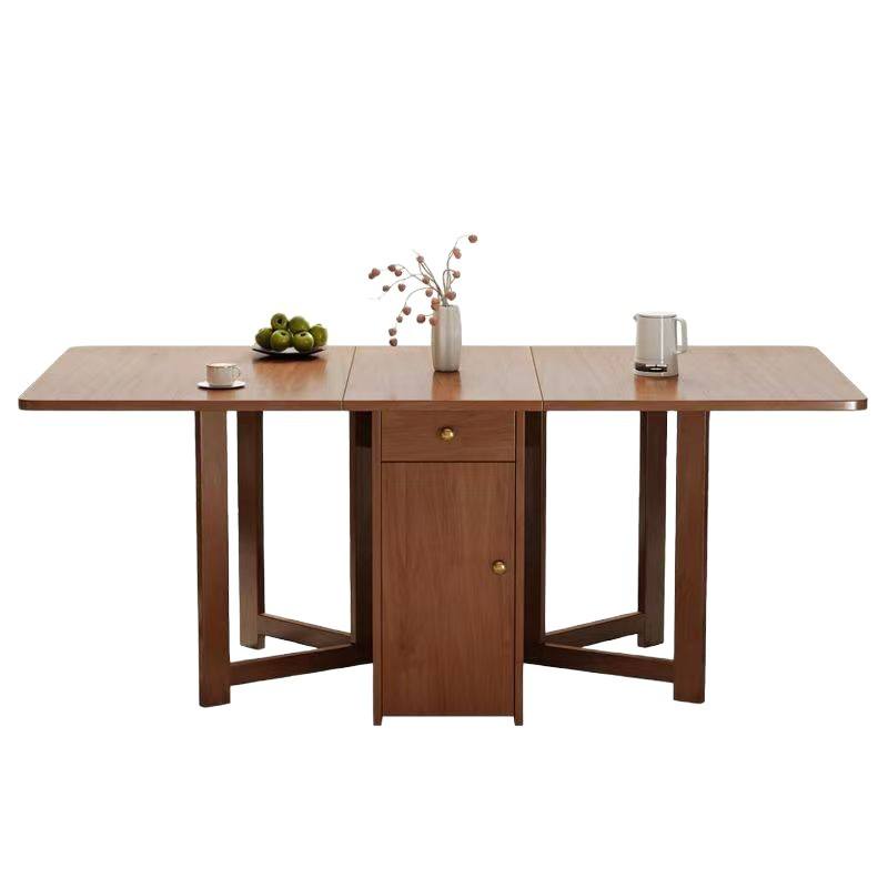Solid Wood Dining Table Rectangle Foldable Telescopic Dual Purpose For Dining Room