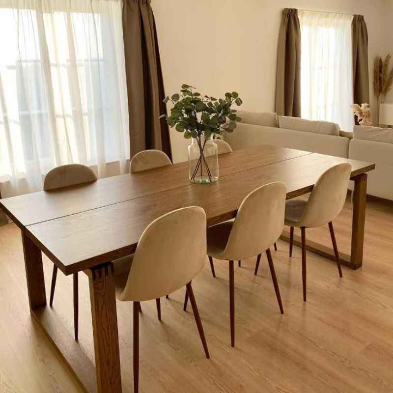 Solid Wood Dining Table Set Rectangular Modern Wooden Table Thick Box Leg Minimalist Clean Line Mid Century Dining Furniture
