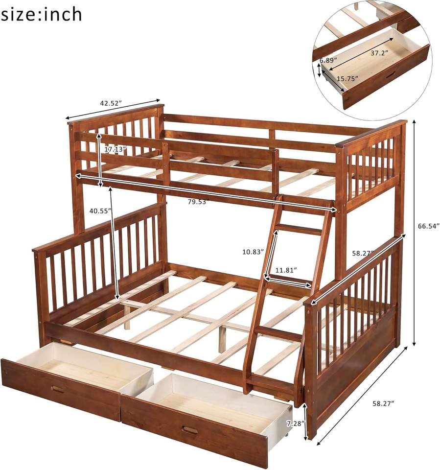 Solid Wood Double Bunk Bed with Traditional Design Assembly Required-Optional Slats Sold Separately