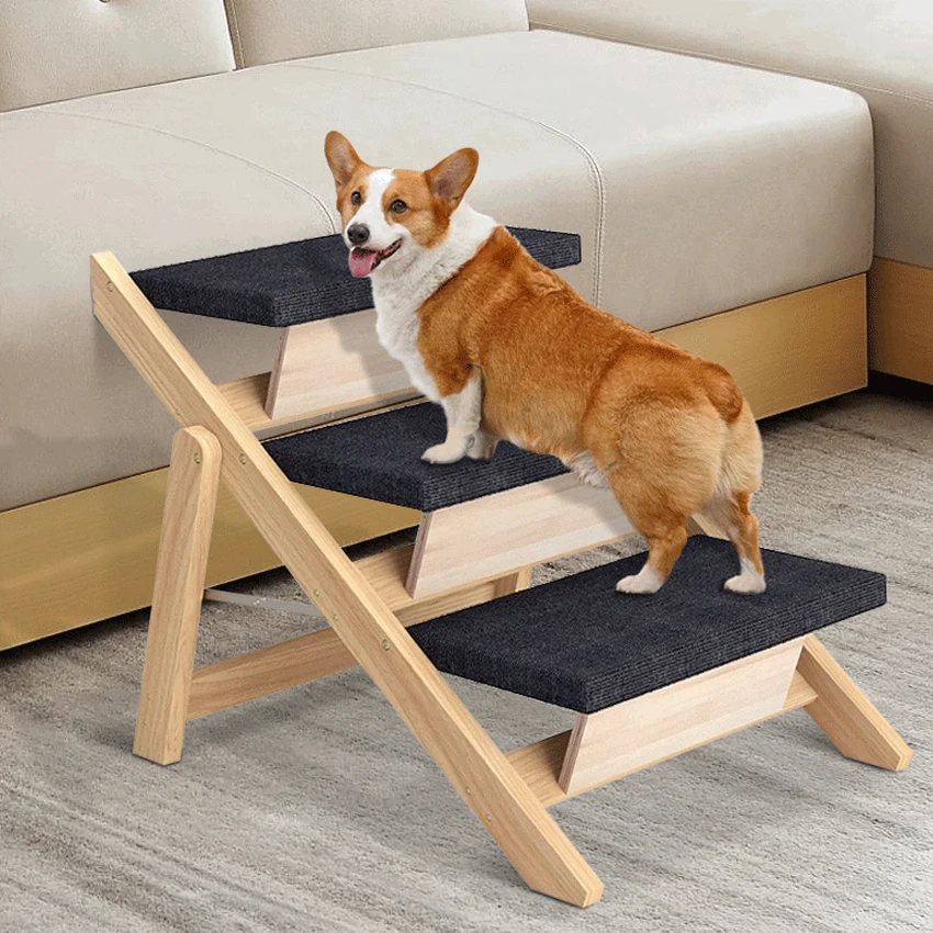 Solid Wood Folding Pet Ladder Luxury Style Accessory for Dog Staircase Climbing Onto Cars or Sofa Beds