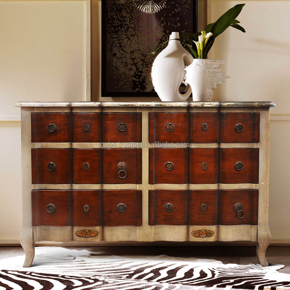 Solid Wood France Style Living Room Cabinets 6-Drawer Chest with 2 Tone Color for Home Use