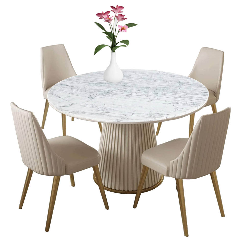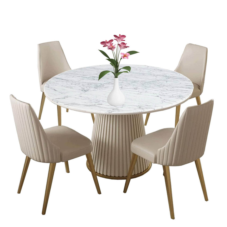 Solid Wood Mahogany Hotel Luxury Kitchen Dining Table Set with 4 Chair Synthetic Leather Modern Design Top Marble Room Furniture