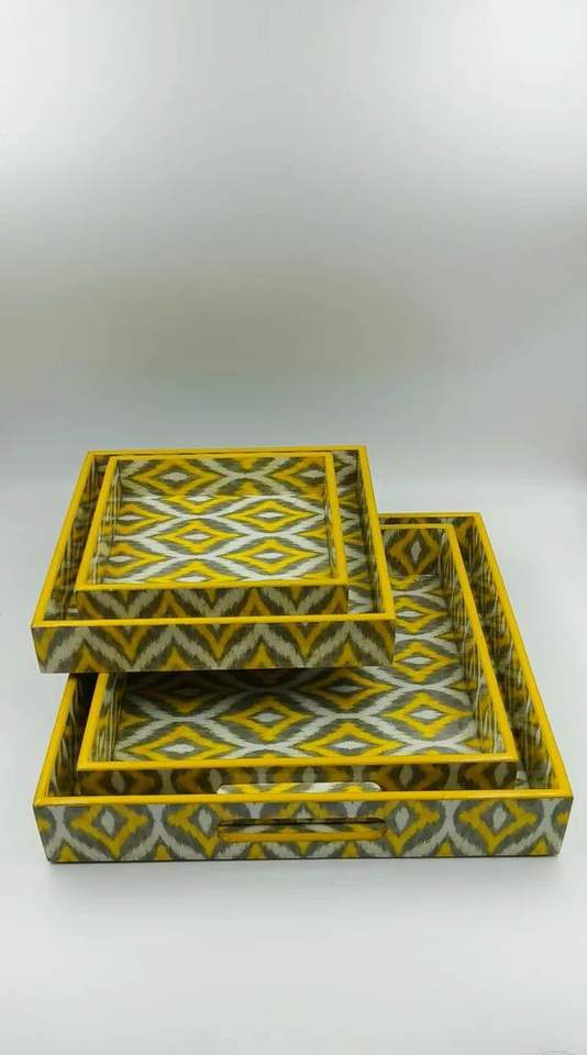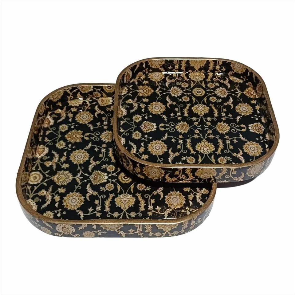Solid Wood Printed Tray Customize Size Fruits And Food Serving Tray Set Of 3 Handmade Handicraft Top Quality Enamel Printed Tray