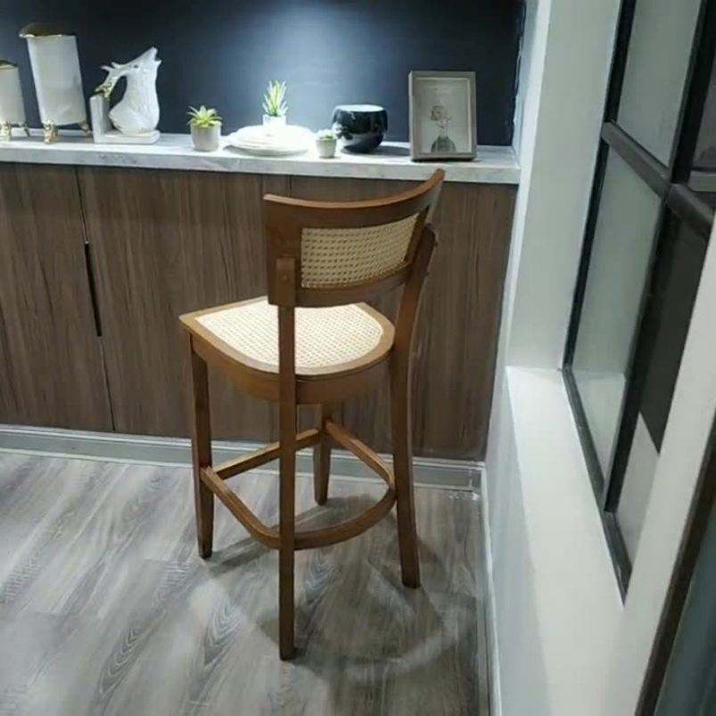 Solid Wood Rattan Bar Stool for Coffee Shops & Restaurants Color Options Available Furniture