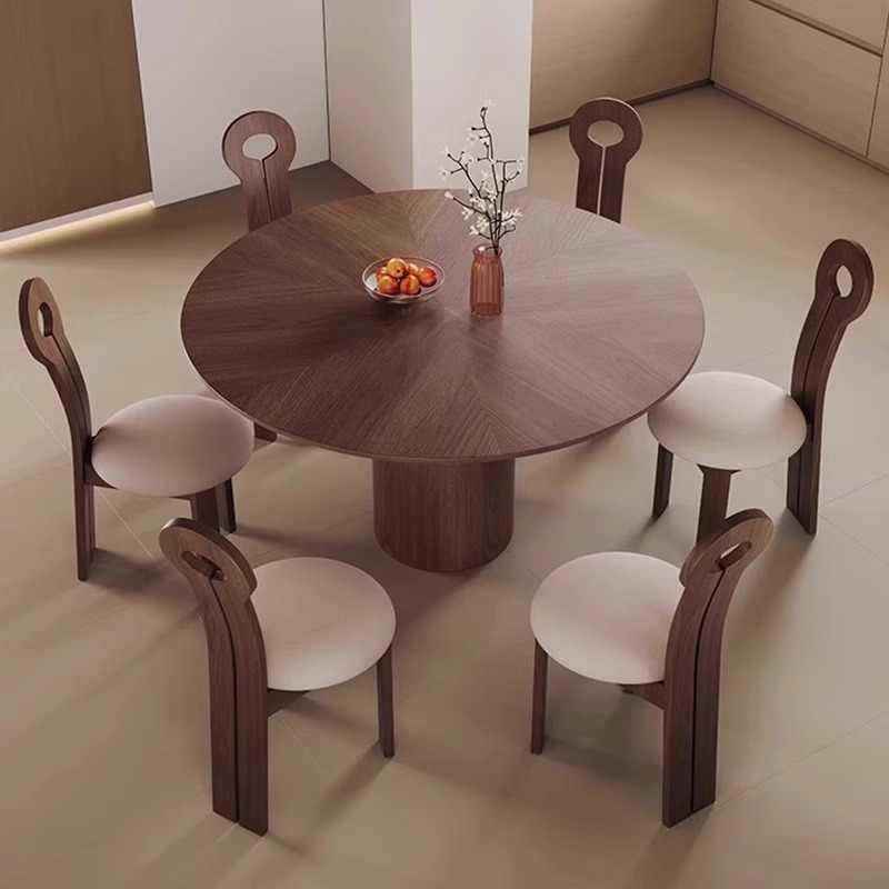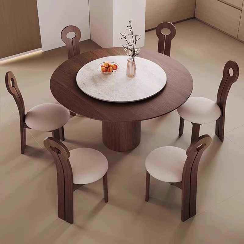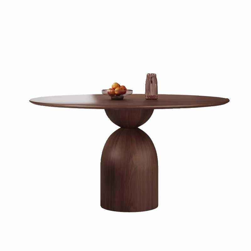 Solid Wood Round Dining Table Walnut Color Stable Structure For Dining Room