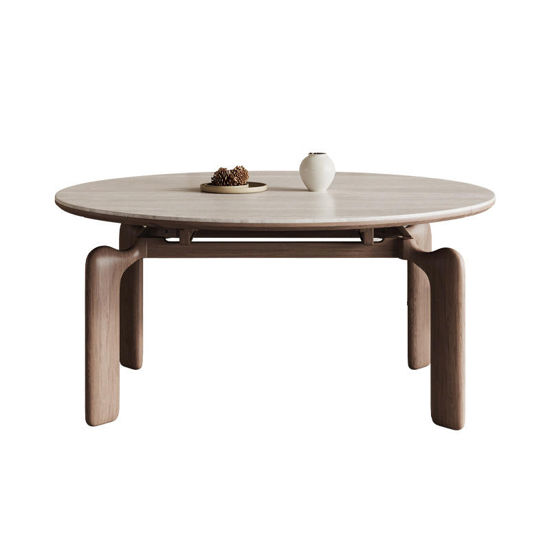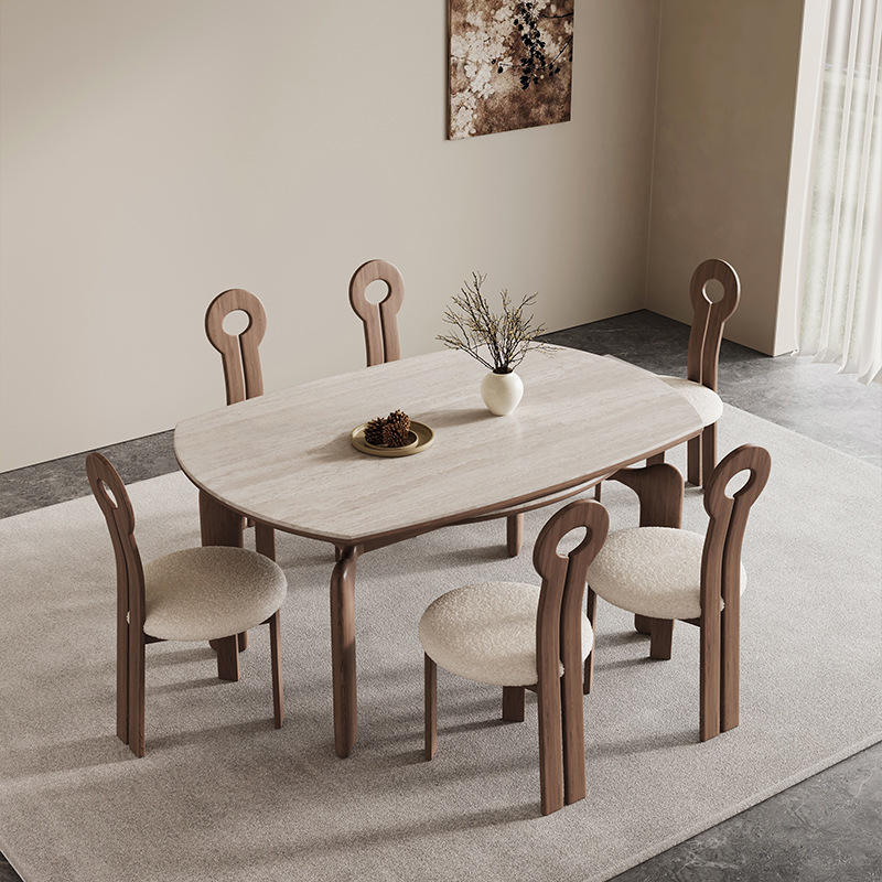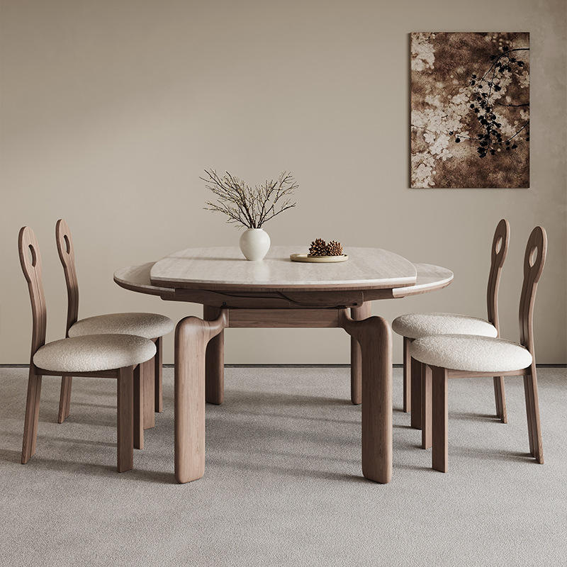 Solid Wood Slab Dining Table Extendable Travertine Top 4 Piece Set Wabi Sabi Style Dining Room Furniture