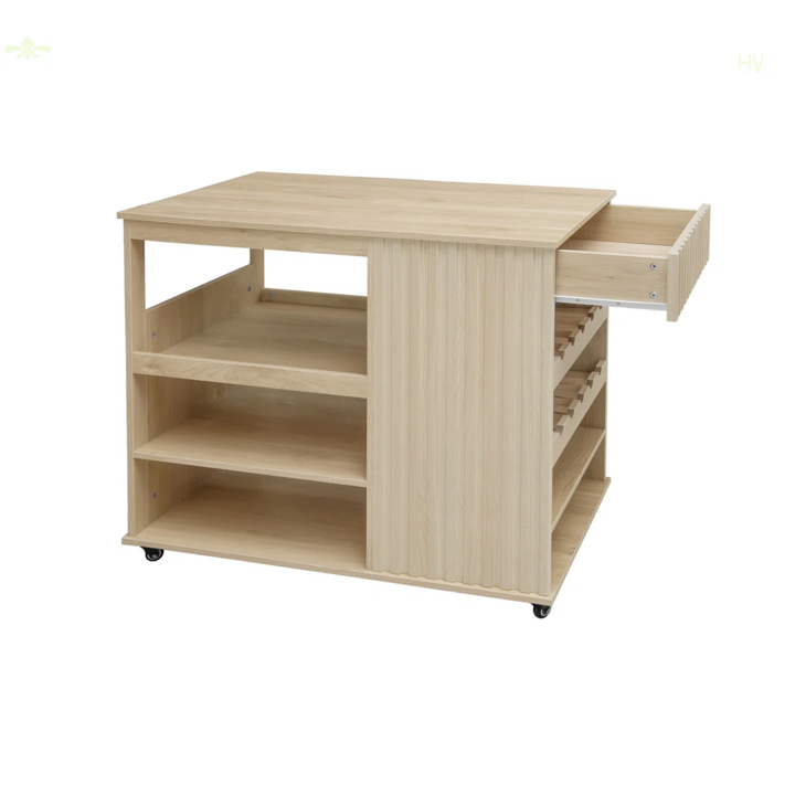 Solid Wood Two-Door Base Cabinet Cart with Four-Shelf Kitchen Storage Island Rolling Serving Utility Trolley Island Cart