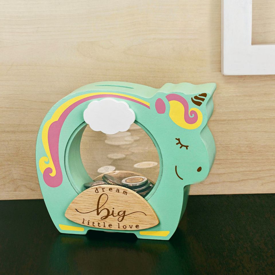 Solid Wood Unicorn Piggy Bank Money & Banking Toys for Kids Nursery Decor Birthday Present Baby Shower Gifts for Boys & Girls